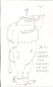 - The abominable snowman just can’t understand why birds normally found in the mountains are flying around in the mountains. At least Gwydion didn’t have a cream pie.