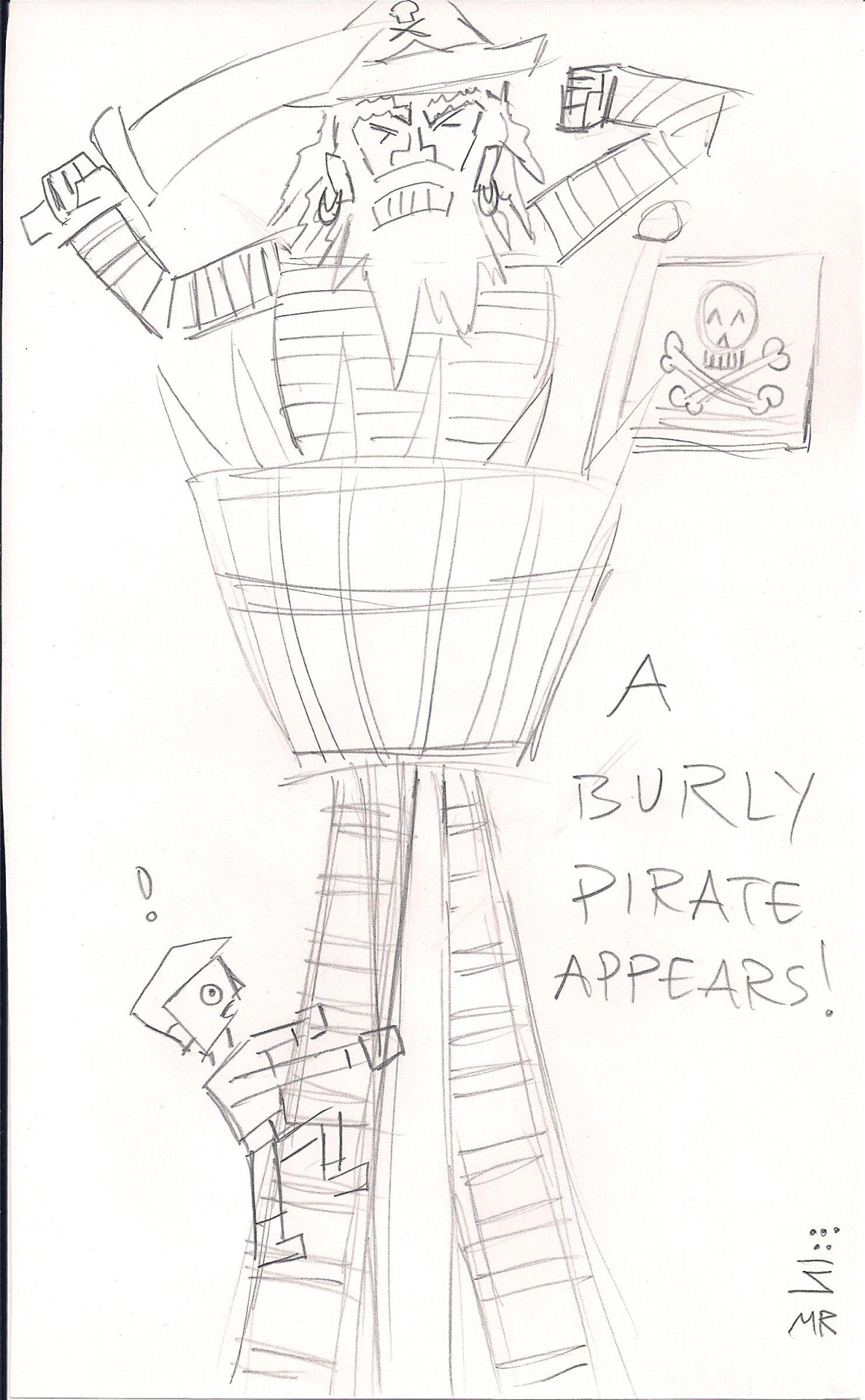 tumblr_nl40es423y1uo33e3o1_1280 Published November 25, 2015 at 1186 × 1920 in King’s Quest III Doodles The burliest of pirates appears in the crow’s nest! Yar!