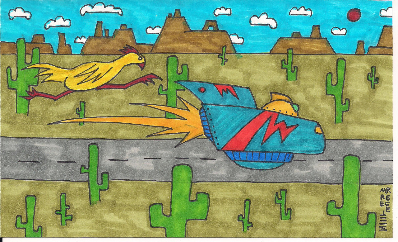 tumblr_nnl87lu1ml1uo33e3o1_1280 Published November 30, 2015 at 1280 × 777 in Chrono Trigger Doodles This drawing of the bike race from Chrono Trigger may or may not feature some historical inaccuracies. Also a chocobo.