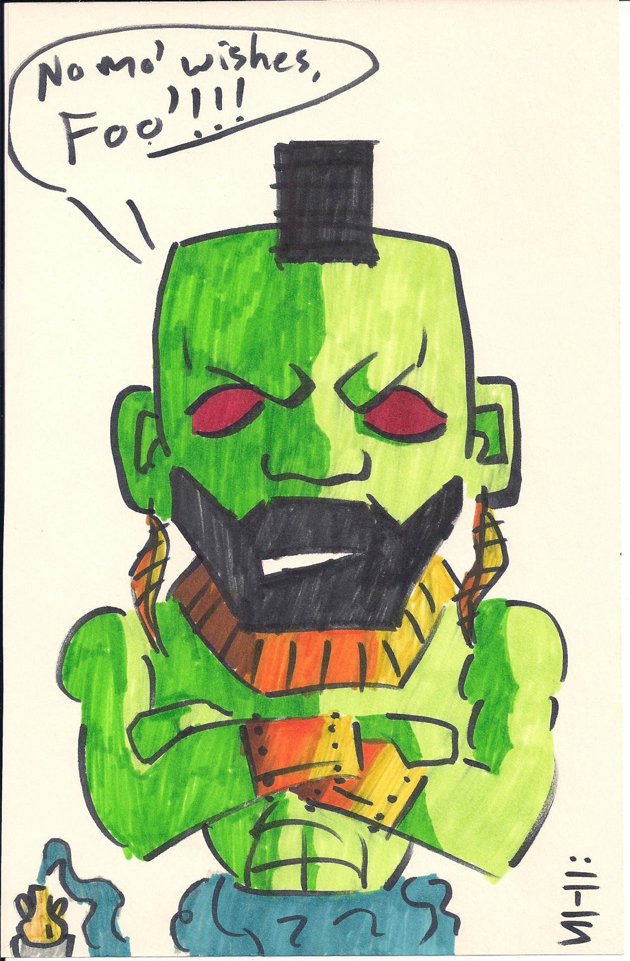 tumblr_nwom261n6d1uo33e3o1_1280 Published November 30, 2015 at 1258 × 1920 in Quest for Glory II Doodles The wait icon from Quest for Glory II VGA is actually Mr. T the genie! Your three wishes are to stay in school, don’t do drugs, and drink your milk, sucka!