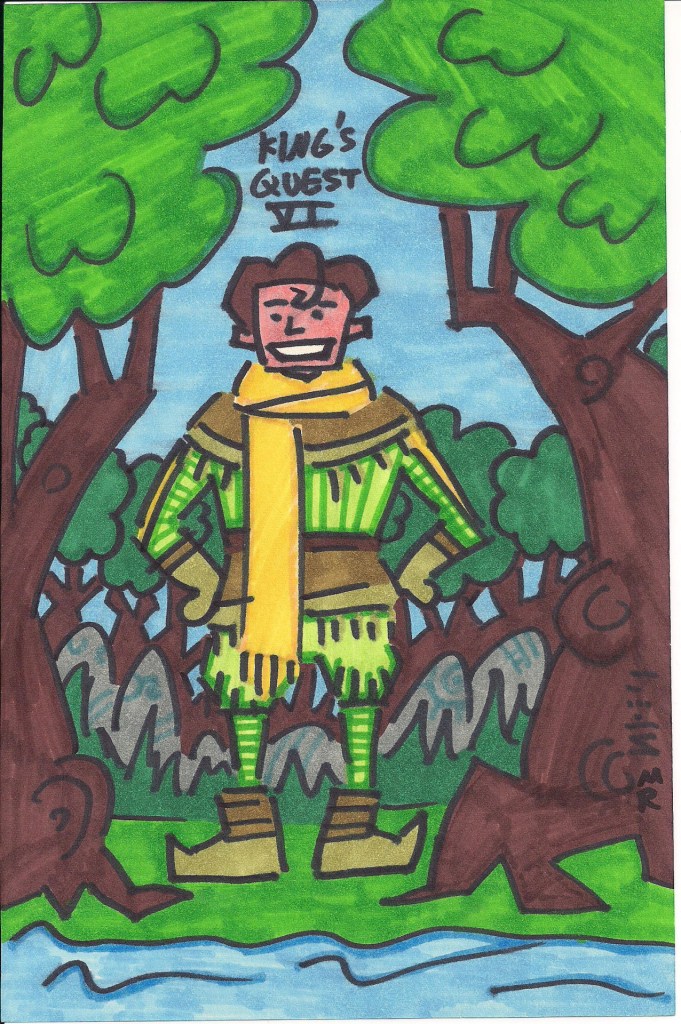 tumblr_nshfuf3dje1uo33e3o1_1280 Published November 30, 2015 at 1276 × 1920 in King’s Quest VI Doodles A nice marker portrait of Prince Alexander from King’s Quest VI.