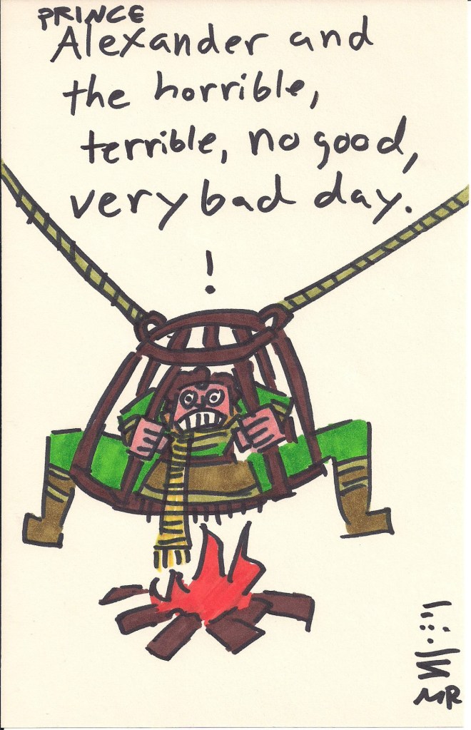 tumblr_nshg2tnel81uo33e3o1_1280 Published November 30, 2015 at 1238 × 1920 in King’s Quest VI Doodles Sometimes life treats you well, other times you’re being roasted by druids.