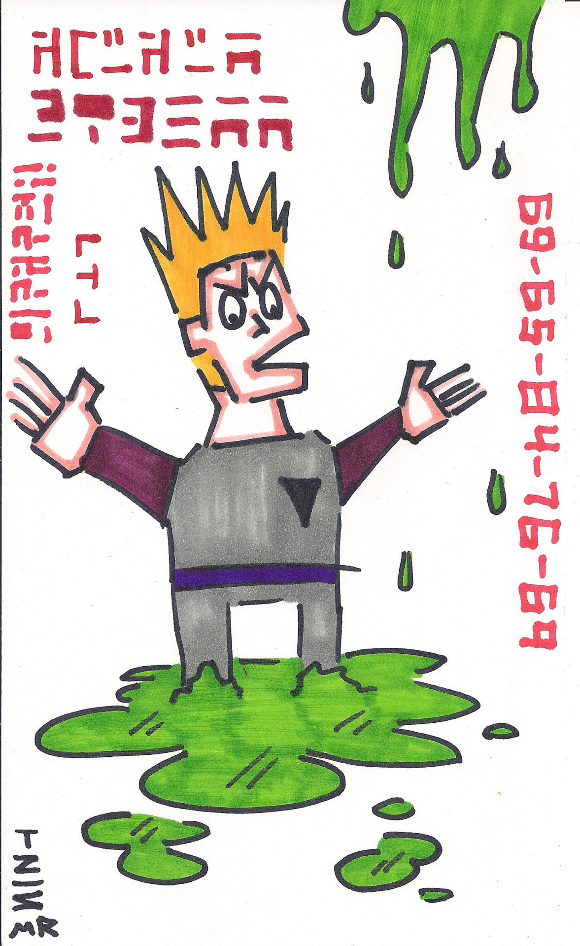 tumblr_npwndkfjqn1uo33e3o1_1280 Published November 30, 2015 at 1177 × 1920 in Space Quest IV Doodles Roger Wilco drowns in slime from Space Quest IV, er, XII! Also, time-travel coordinates and such form a border.