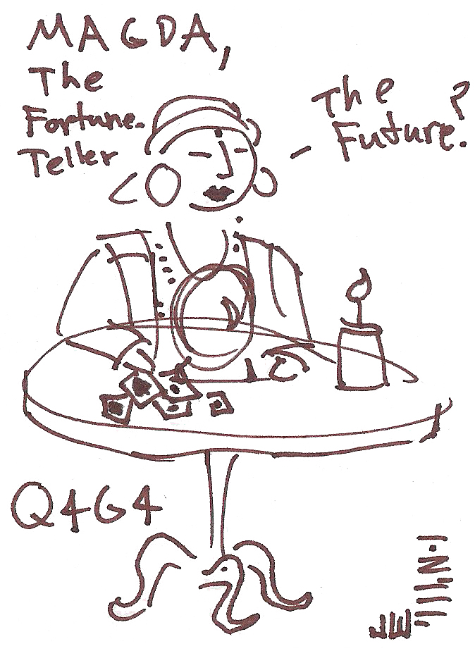 tumblr_ohocvfabhu1uo33e3o1_1280 Published April 5, 2017 at 674 × 924 in Quest for Glory 4 Doodles Magda, the gypsy fortune teller, giving some not-very-helpful hints. “Dreams mean something, or they don’t. Whatever; fifty dollars.”