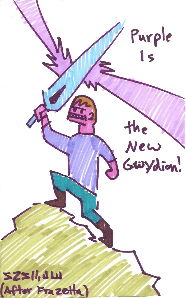 tumblr_o9ch83bver1uo33e3o1_1280 Published October 16, 2016 at 1196 × 1920 in King’s Quest III Redux Doodles Gwydion has a great purple shirt. And a sword for some reason.