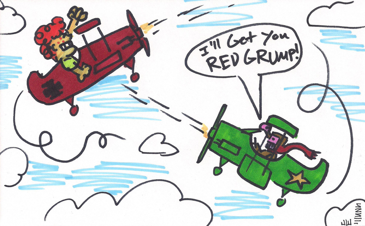 tumblr_o9ch5h3anp1uo33e3o1_1280 Published October 16, 2016 at 1280 × 794 in Triple Action for the Intellivision Inspired by the bi-plane section. Here’s the World War One Doodling Ace!