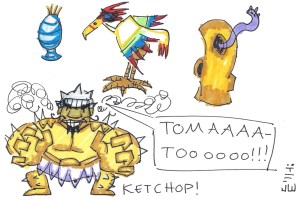 - Some more enemies. Top row: a Potpourri, a Dodo, and a Drongo. Bottow row: everyone’s favorite hulking giant dragoon, Ketchop! TOMAAAATOOOOOO!!!