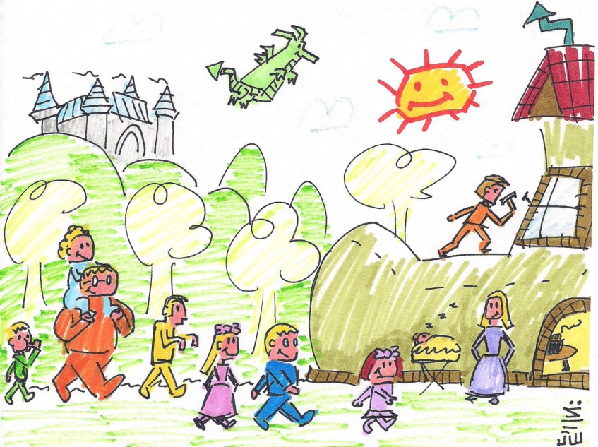tumblr_oeeluadzhu1uo33e3o1_1280 Published January 2, 2017 at 1280 × 956 in Mixed-Up Mother Goose There was an old Doodler who lived in a shoe / Who had so many nephews (and nieces) he didn’t know what to do! / He drew them a dragon and a smiling sun / And the squarest of castles made this drawing done!