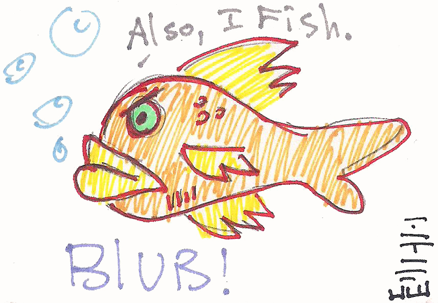 tumblr_ohbhxgnooz1uo33e3o1_1280 Published January 2, 2017 at 857 × 592 in Dokapon Kingdom Doodles Here’s a fish. It was drawn during this project, though nothing in the game looks like it. It’s just a fish. Deal with it.