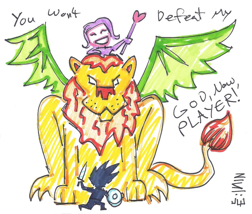 tumblr_pelericf9u1uo33e3o1_1280 Published October 5, 2018 at 1280 × 1088 in Dokapon Kingdom Doodles Spoiler alert: the Player did defeat the Krazy Kat’s god. Several times.