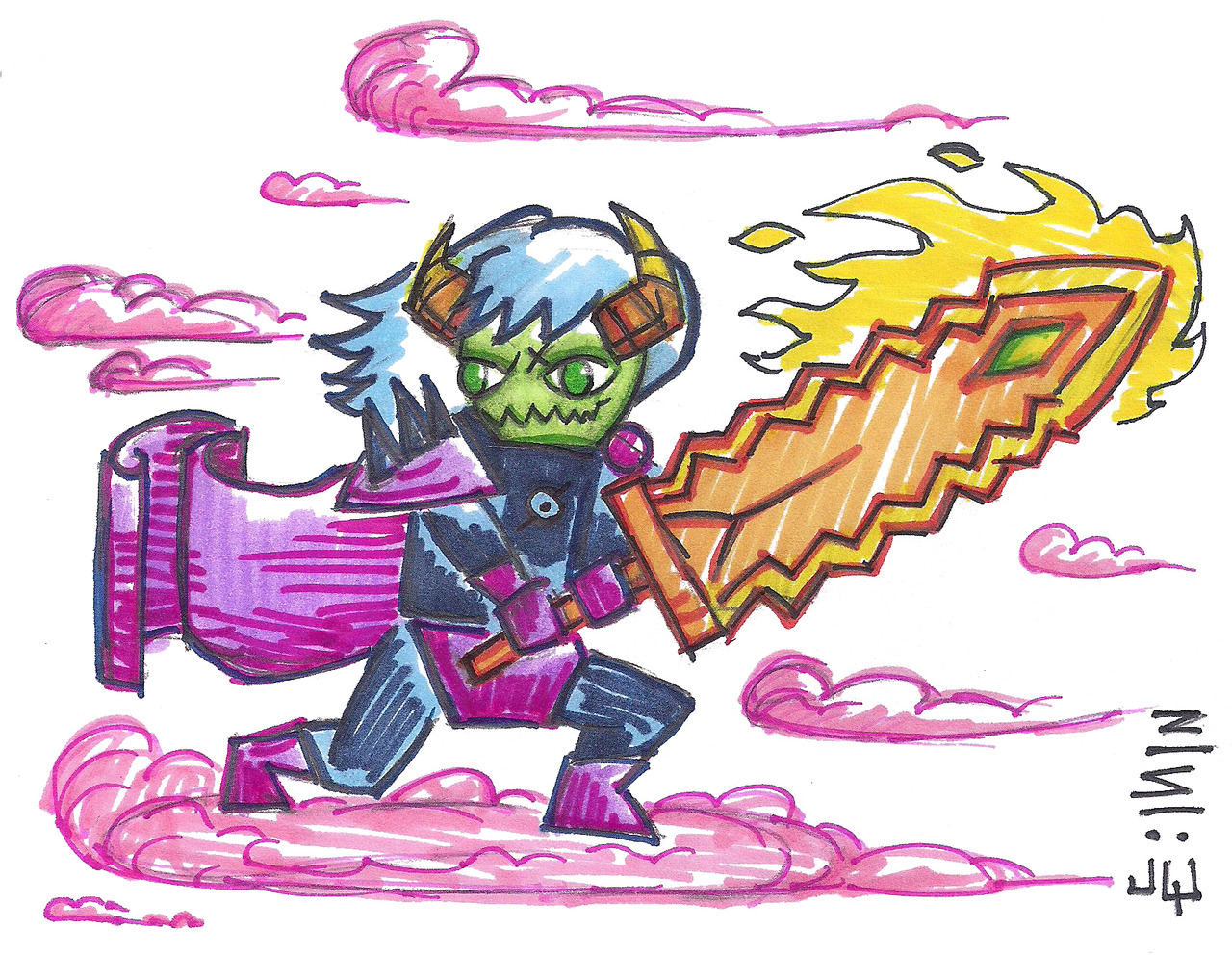 tumblr_pelesn2vmp1uo33e3o1_1280 Published October 5, 2018 at 1280 × 992 in Dokapon Kingdom Doodles A cross between a Homestuck troll and Rico Jr.