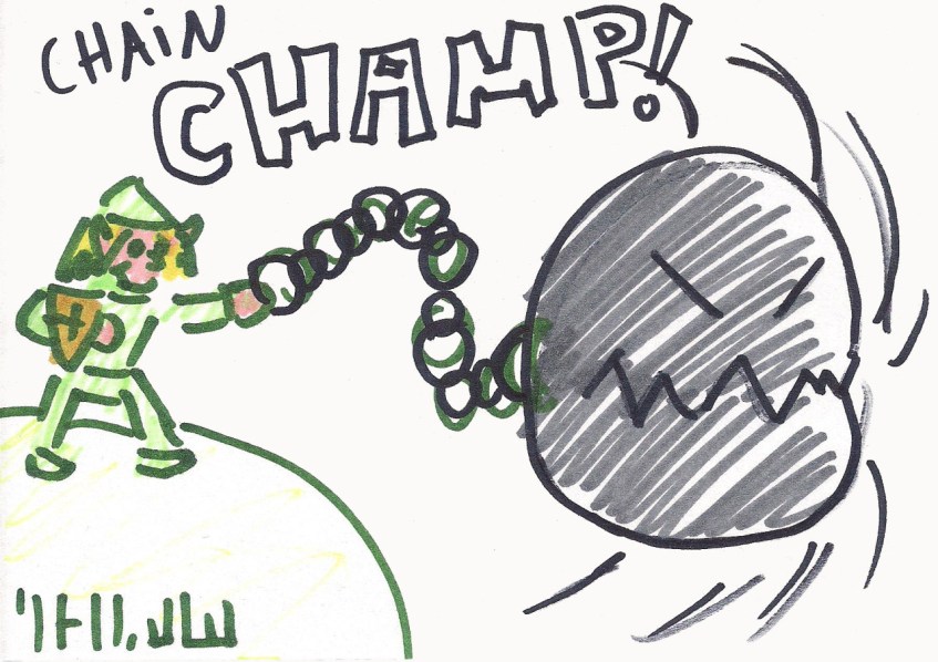 tumblr_oeenz6jdhk1uo33e3o1_1280 Published January 30, 2017 at 1280 × 903 in Link’s Awakening DX Doodles Sweet lil’ Bow Wow (not the rapper) is the champ chain chomp! Say that three times fast!