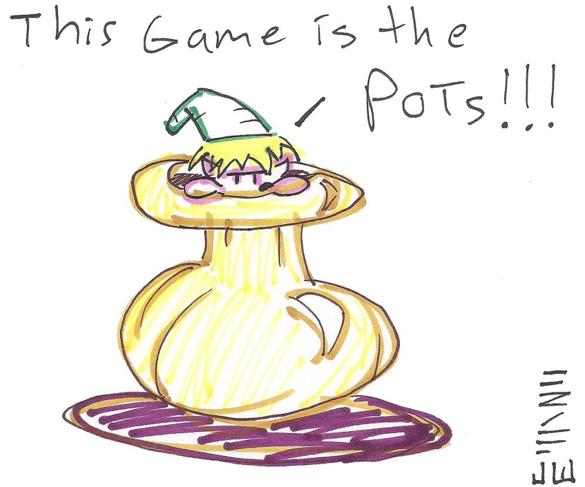 tumblr_opo1pc4w4c1uo33e3o1_1280 Published August 23, 2017 at 1280 × 1066 in Link’s Awakening DX Doodles Pots: a Zelda staple! No Buzz Blobs though.