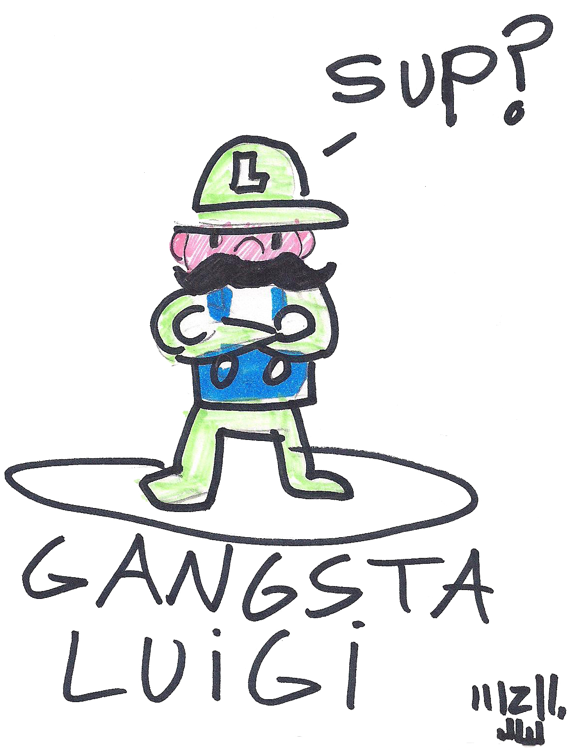 tumblr_okxc42p00d1uo33e3o1_1280 Published May 3, 2017 at 1148 × 1519 in Super Mario World Doodles Luigi’s always had attitude, at least since the SMAS version of Super Mario World. Word.