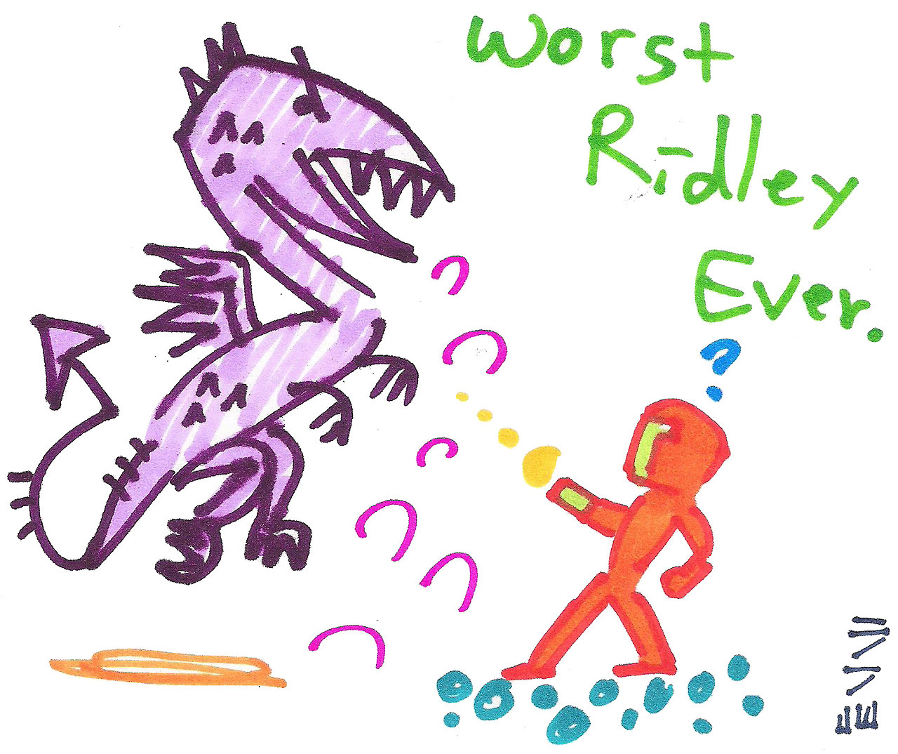 tumblr_opo23hyl751uo33e3o1_1280 Published August 25, 2017 at 1280 × 1074 in Metroid for the NES Ridley: also not that impressive. He, uh, jumps up and down. He spits super-slow fireballs. He doesn’t even SKREEONK!