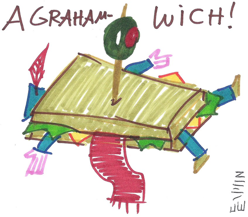 tumblr_opo53gwvrt1uo33e3o1_1280 Published September 27, 2017 at 1280 × 1119 in King’s Quest (2015) Chapter 3: Once Upon a Climb Doodles Based on a dumb joke we made about S’mores (you see, a S’more is a Graham-wich because the crackers are like the bread and the marshmallow and chocolate are etc. etc. whatever).
