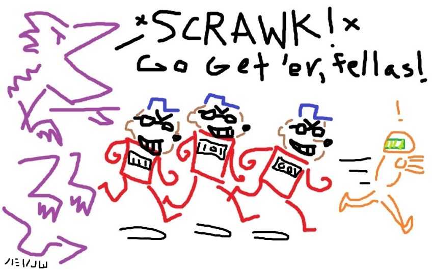tumblr_p4m7e51lhw1uo33e3o1_1280 Published March 27, 2018 at 1008 × 630 in Metroid Prime Doodles Ridley hires the Beagle Boys to catch Samus and steal all the Energy from her Energy Bin!