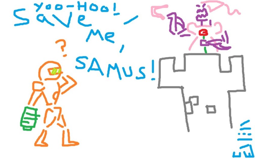 tumblr_p4m7grma1z1uo33e3o1_1280 Published March 27, 2018 at 1008 × 630 in Metroid Prime Doodles Ted the Space Pirate needs rescuing! Can Samus save him from the square castle?