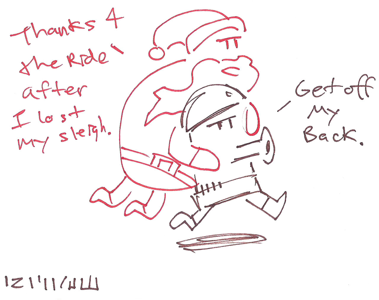 tumblr_pelbyh53g51uo33e3o1_1280 Published September 13, 2018 at 1280 × 1013 in Super Metroid (Justin Bailey) Doodles The Work Robot substitutes for Santa’s sleigh, albeit unwillingly.