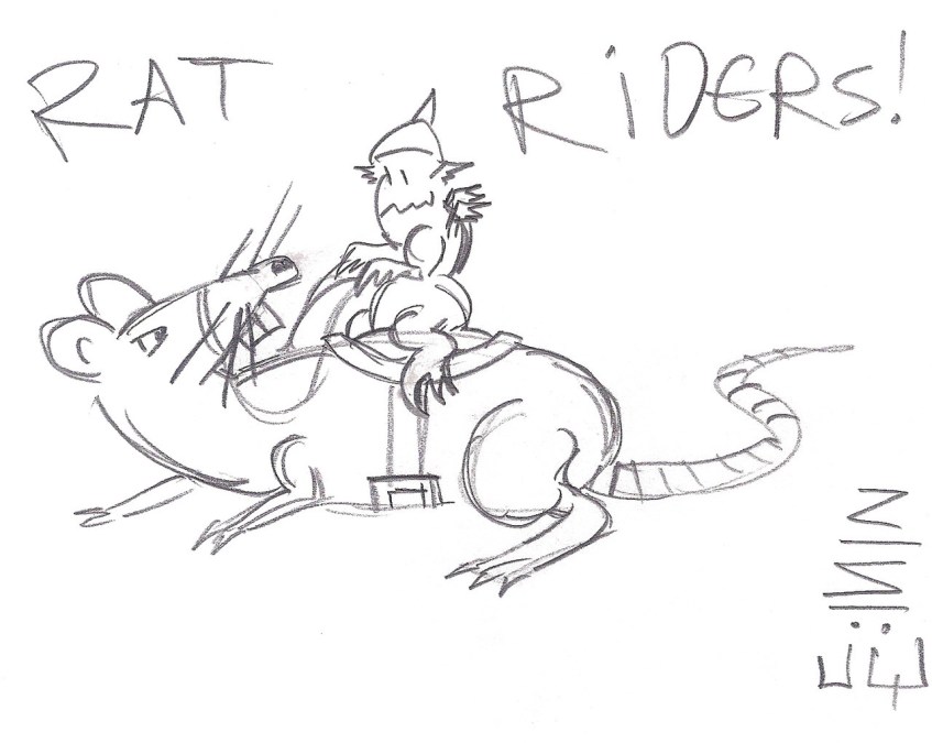 tumblr_pelccb70hs1uo33e3o1_1280 Published October 18, 2018 at 1280 × 1020 in King’s Quest (2015) Chapter 5 Doodles Rat-riding goblins! They were cut from Chapter 2 and put in the “deleted scenes” scene in this chapter!