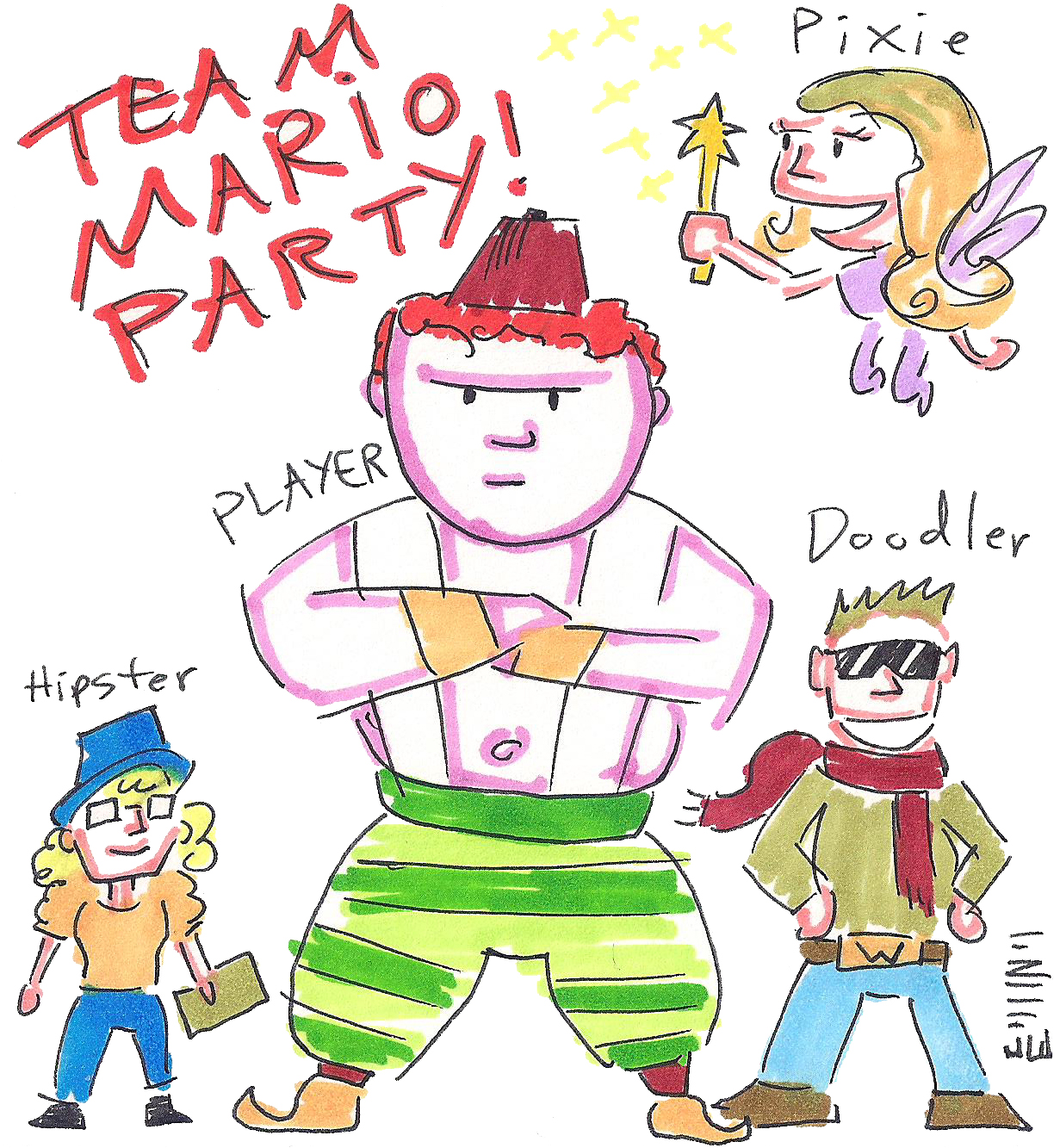 tumblr_o9ch27uz771uo33e3o1_1280 Published July 30, 2016 at 1231 × 1333 Our Mario Party 3 crew! With guest stars The Hipster and the Pixie, and “guest star” The-Player-turned-into-a-watermelon-pants-genie!